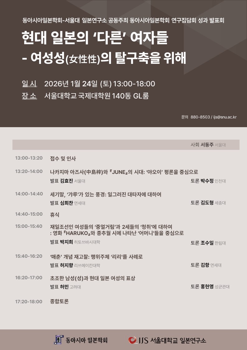 초조한 남성(성)과 현대 일본 여성의 표상 (발표: 허민, 토론: 홍현영)