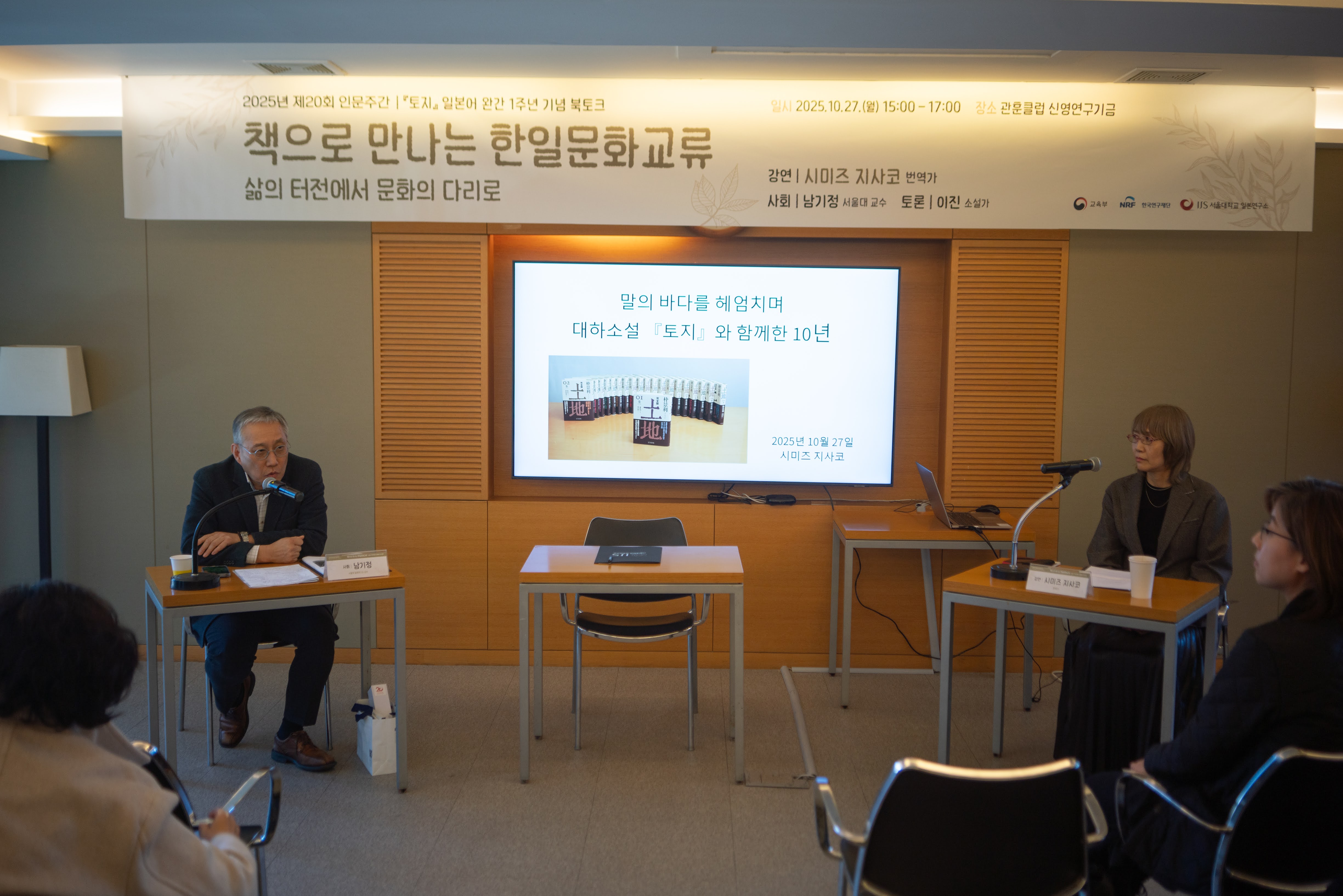 As part of the 20th Humanities Week organized by the National Research Foundation of Korea, a book-talk event titled "Korea–Japan Cultural Exchange through Books" was held to commemorate the first anniversary of the completion of the Japanese translation of novelist Park Kyung-ni’s 『Land』 (Toji). The event took place at the Kwanhun Club in Insadong, Seoul, and drew around thirty pre-registered participants.