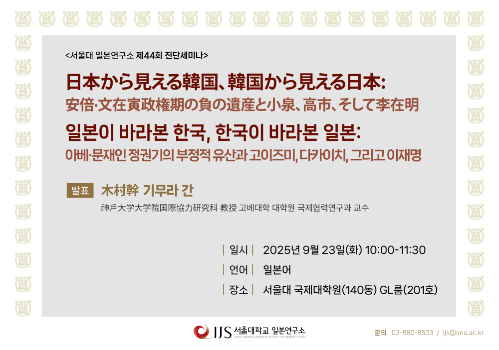 Inquiry: IJS Administration Office (880-8503 / ijs@snu.ac.kr)