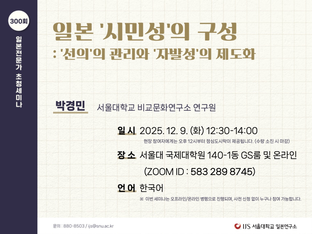 Inquiry: IJS Administration Office (880-8503 / ijs@snu.ac.kr)