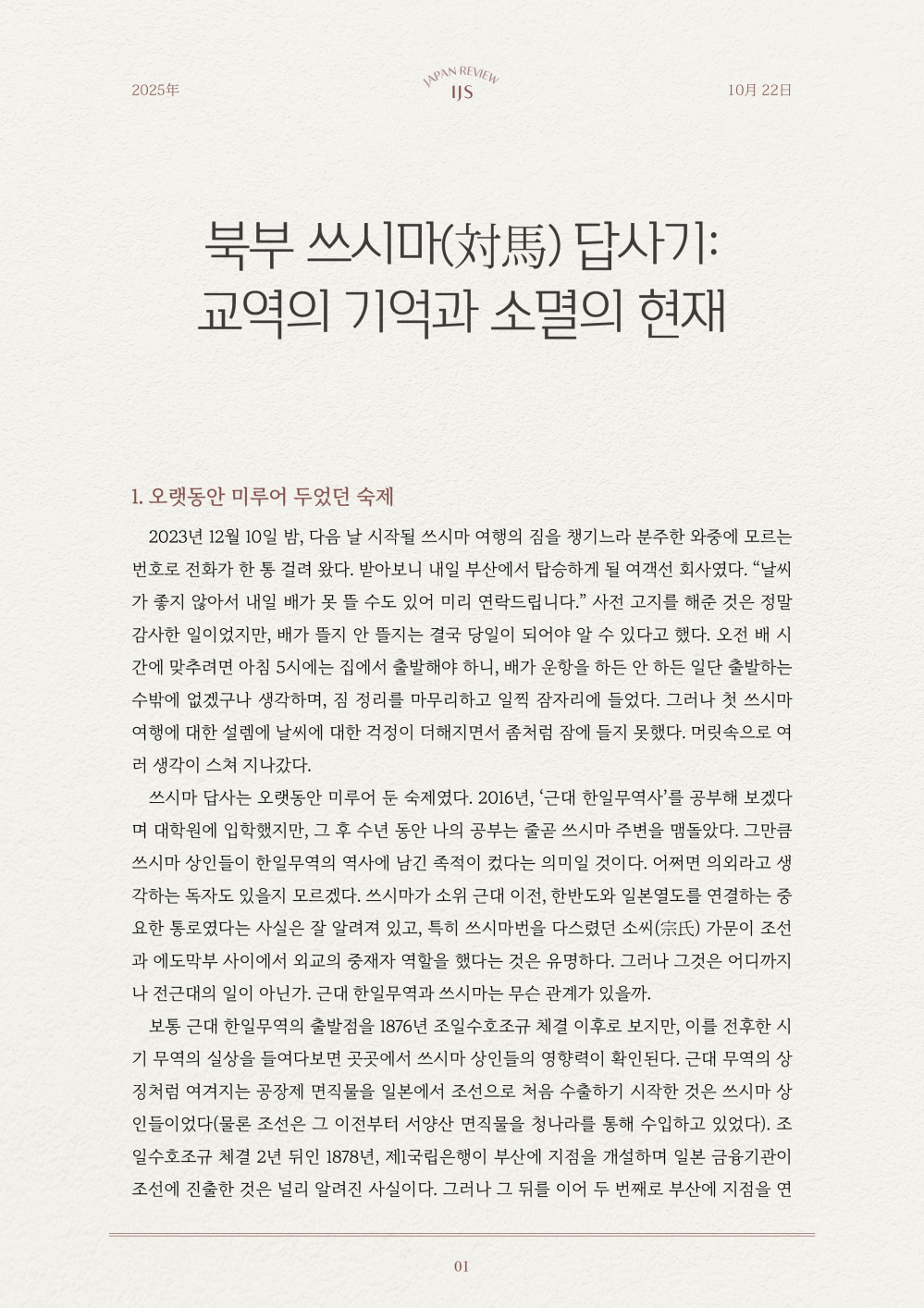 북부 쓰시마(対馬) 답사기: 교역의 기억과 소멸의 현재
